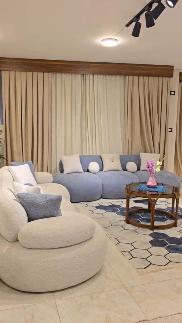 أنتريه مصمم بعنايه من خشب الزان الاحمر الروماني وبحرفيه عاليه وقماش بلونين مميزين من قماش باندا مستورد وكثافة إسفنج عاليه لراحه أكبر وبشكل ولا أروع مع تربيزة خشبيه بشكل جمالي