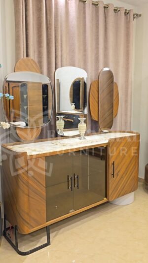تصميم راقي جدا بمساحه تخزينيه واسعه مع رخام مستورد وجوده أخشاب من الزان الروماني الاحمر مع تنجيد في منتهى الابداع والإتقان بماتريال عالي وبلمسه من القشره الطبيعيه
