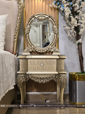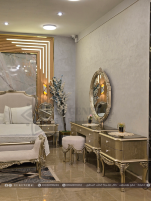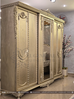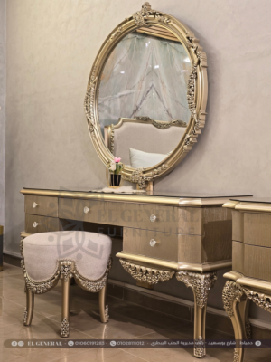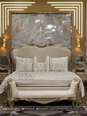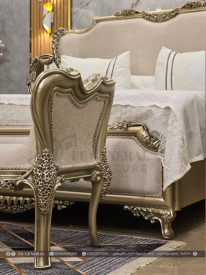 غرفة نوم كلاسيكيه رائعه باللون الشامبين مع الهاند ميد الرائع مصنوعة من أجود أنواع القماش المستورد مع الازاز الفاميه الفاخر الدولاب بمساحة تخزين واسعه مع اتنين كمود في منتهى الشياكه والعمليه والتسريحة بالشكل الفخم والسرير بالتنجيد العالي من خامات عاليه مع بانكت وشفنيرا عمليين وشكلهم حلو