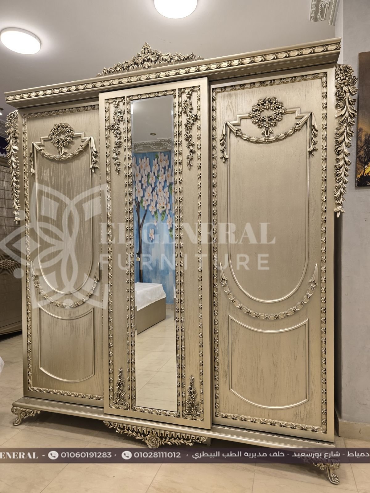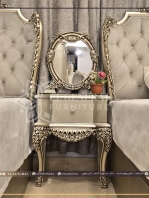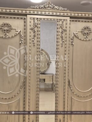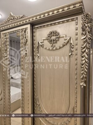 دايزين الدولاب من الايمه المرسومه ومفحوره بدقه عاليه مع اتنين سرير بتنجيد كابتونيه راقي جدآ وتسريحه وكمود بمساحه تخزين عمليه