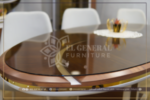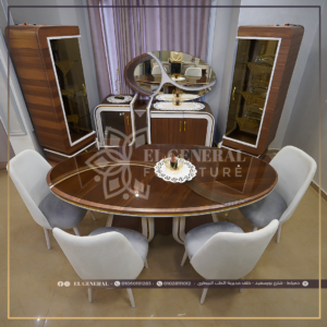 الوصف : سفرة الترا مودرن بتصميم سيمبل وجذاب شكل ترابيزة بيضاوي متناسق مع قلب الترابيزة المميز ؛ بوفيه بمساحات تخزين مختلفة وعملية مع برواز معلق و 2 ميني نيش بزجاج فاميه والوحدات بالكامل سوفت كلوز