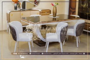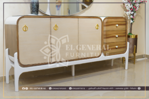 الوصف : سفرة بلون قشرة طبيعي راقي جدا مع تطعيمات من لون الكافيه والاوفوايت