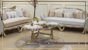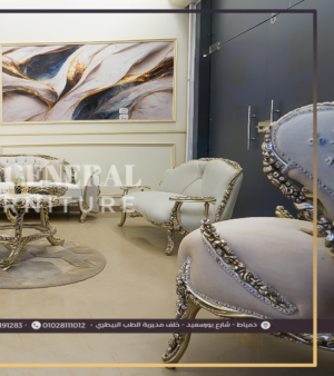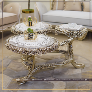 الوصف: صالون بتصميم مختلف ومميز شكل الفوتيه بدون مخادع ومصنع بحرفية عالية مع ٣ ترابيزات دائرية متداخلة وهاند مين في قمة الفخامة والجمال تفاصيل ورسمة وأناقة صالون كوين تجعله من أجمل أطقم الصالون في دمياط