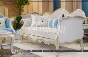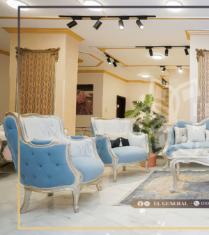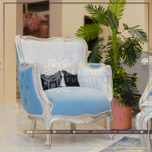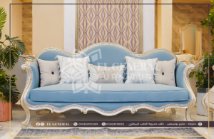 الوصف: صالون بتصميم مختلف ومميز شكل الفوتيه مصنع بحرفيه عالية والوانه البيبي بلو مع الكافيه في قمة الفخامة والجمال تفاصيل ورسمة وأناقة صالون مميز جدا