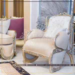 الوصف: صالون بتصميم مختلف ومميز مكون من 7 قطع شامبين جولد مطعم باللون الاسود ماتشنج في قمة الرقة والجمال شكل الفوتيه مميز جدا ومصنع بحرفية أقمشة تركية معالجة مستوردة سهلة التنظيف مع كثافة اسفنج سوفت 38 تصميم في قمة الفخامة والجمال تفاصيل وتناسق الوان الصالون مع رسمة وأناقة سلاسل الحفر اليدوي في الخشب الطبيعي للصالون تخطف العين بسحره وجماله