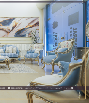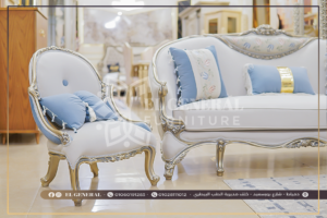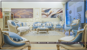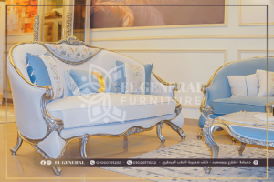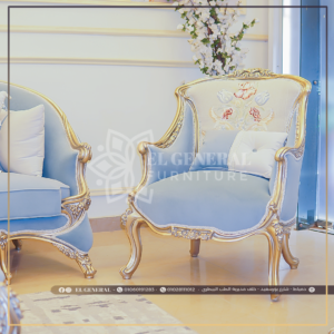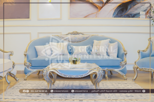 الوصف: صالون بتصميم مختلف ومميز مكون من 7 قطع ماتشنج في قمة الرقة والجمال شكل الفوتيه مميز جدا ومصنع بحرفية أقمشة تركية معالجة مستوردة سهلة التنظيف مع كثافة اسفنج سوفت 38 تصميم في قمة الفخامة والجمال تصميم ابداعي على مخادع الكنبتين وال 2 شيفيز بوجود بوكيهات مميزة من الورود تفاصيل وتناسق الوان الصالون بين اللون البيبي بلو المميز واللون الكافيه مع رسمة وأناقة سلاسل الحفر اليدوي في الخشب الطبيعي للصالون تخطف العين بسحره وجماله