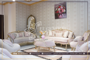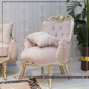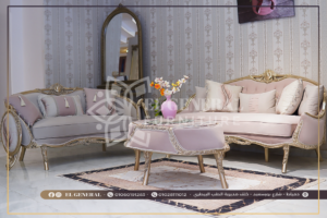 الوصف: صالون بتصميم مختلف ومميز مكون من 7 قطع شامبين جولد ماتشنج في قمة الرقة والجمال شكل الفوتيه مميز جدا ومصنع بحرفية أقمشة تركية معالجة مستوردة سهلة التنظيف مع كثافة اسفنج سوفت 38 تصميم في قمة الفخامة والجمال تصميم ابداعي على مخادع الكنبتين وال 2 شيفيز بوجود بوكيهات مميزة من الورود تفاصيل وتناسق الوان الصالون بين اللون البينك المميز واللون الكافيه مع رسمة وأناقة سلاسل الحفر اليدوي في الخشب الطبيعي للصالون تخطف العين بسحره وجماله