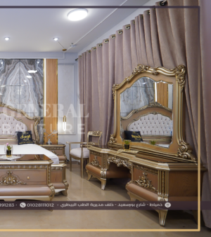 – من أفخم الغرف في صرح الجنرال للأثاث غرفة نوم لفرش الڤيلا والقصور ديزاين ملكي بامتياز غرفة نوم من الأخشاب الزان الاحمر الطبيعية بضمان جودة مدى الحياة