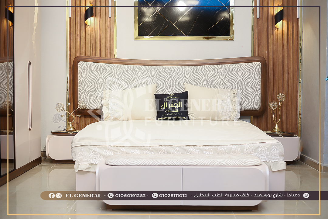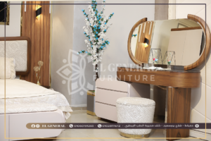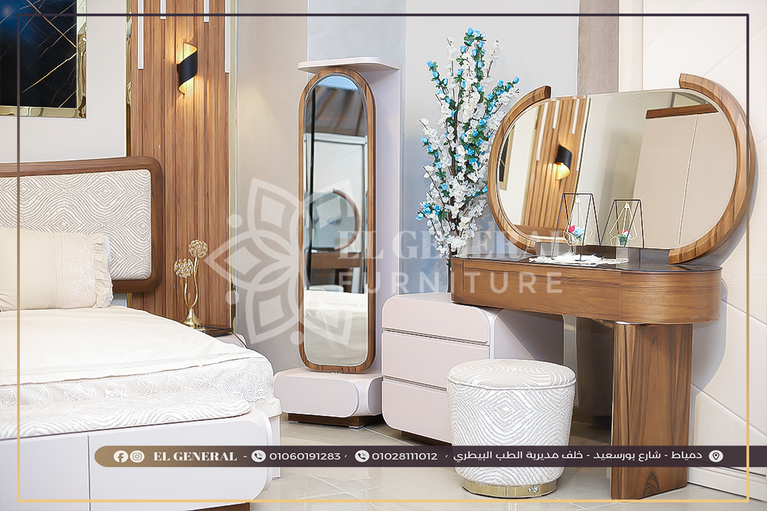 شكل الكومود والتسريحة والسرير .. مع الوان التشطيب المبهرة ورقة وجمال الغرفة دي تستاهل تكون في بيتك