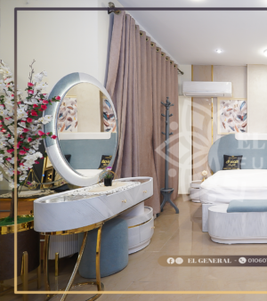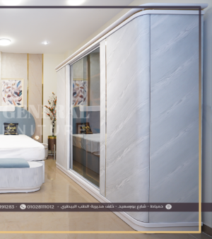 الوصف: غرفة نوم ألترا مودرن بتصميم دولاب ٤ درفة منهم ٢ دريسنج بتجزيعات قشرة طبيعية ولون مميز جدا