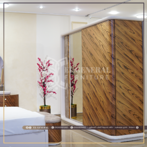 الوصف: غرفة نوم ألترا مودرن بتصميم دولاب ٢ درفة منهم دريسنج بتجزيعات قشرة طبيعية ولون مميز جدا