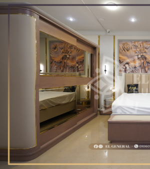 الوصف: كن مميز مع الجنرال للأثاث عند شرائك غرفة نوم لابيسكا بتصمم جديد ومميز بدولاب شيك باللون العسلي بتنجبد الجوانب بطريقة تضفي لمسة جمالية فريدة من نوعها مع الزجاج الفامية والاستالس الجولد وبتقسيمة عملية من الداخل .