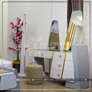 تصميم الغرفة بالكامل قمة في الابداع مع التسريحة وبروازها المميز جدا
