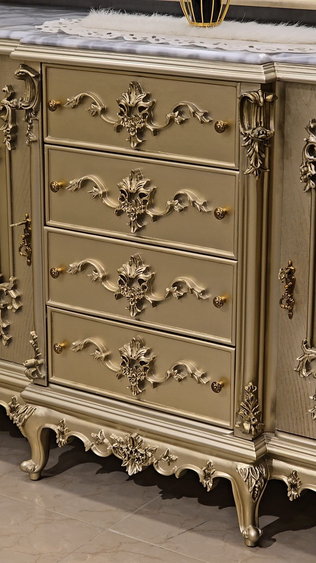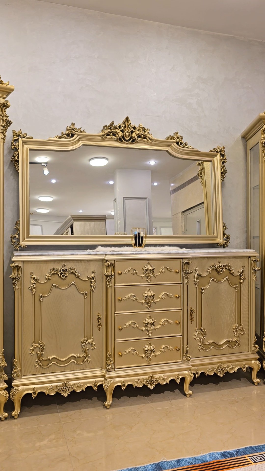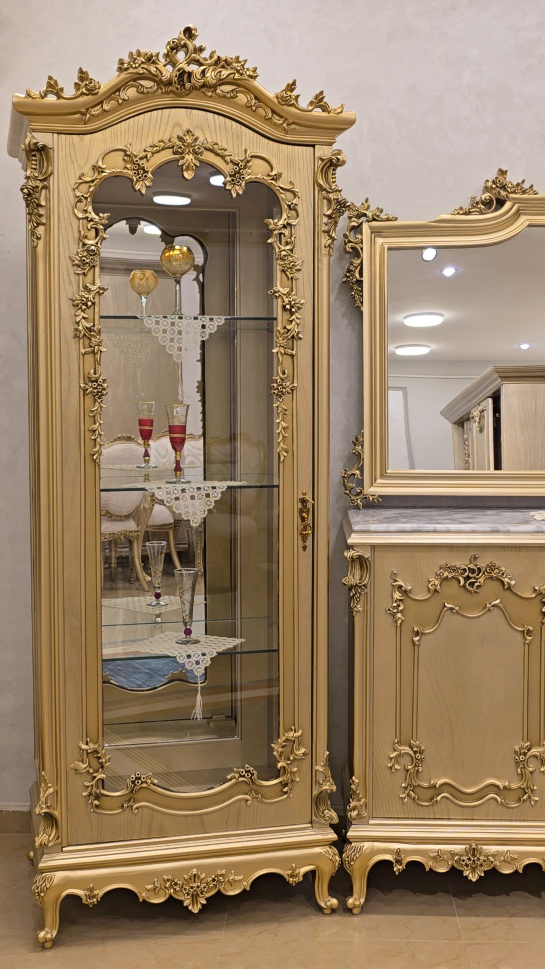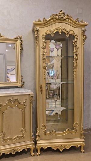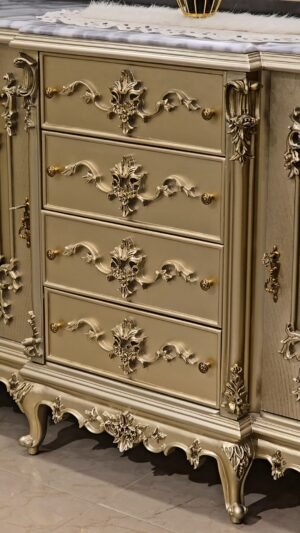 سفره بتصميم كلاسيكي عصري بخامات أخشاب عالي الجوده وبلون دهبي مميز وهاند ميد قوي ومبهر والأيمه بحرفيه عاليه وكثافة إسفنج وقماش راقي و إزاز بمتريال عالي وفاخر جدآ