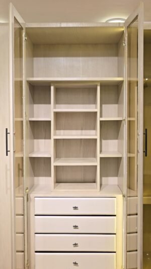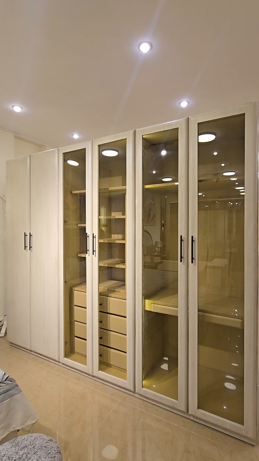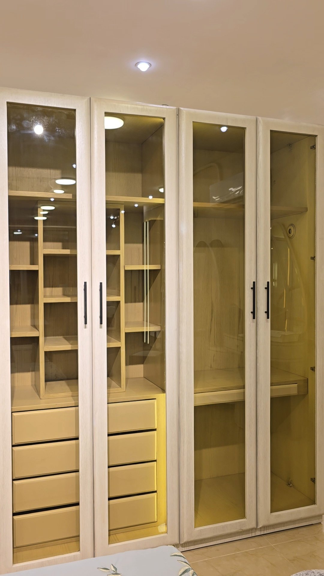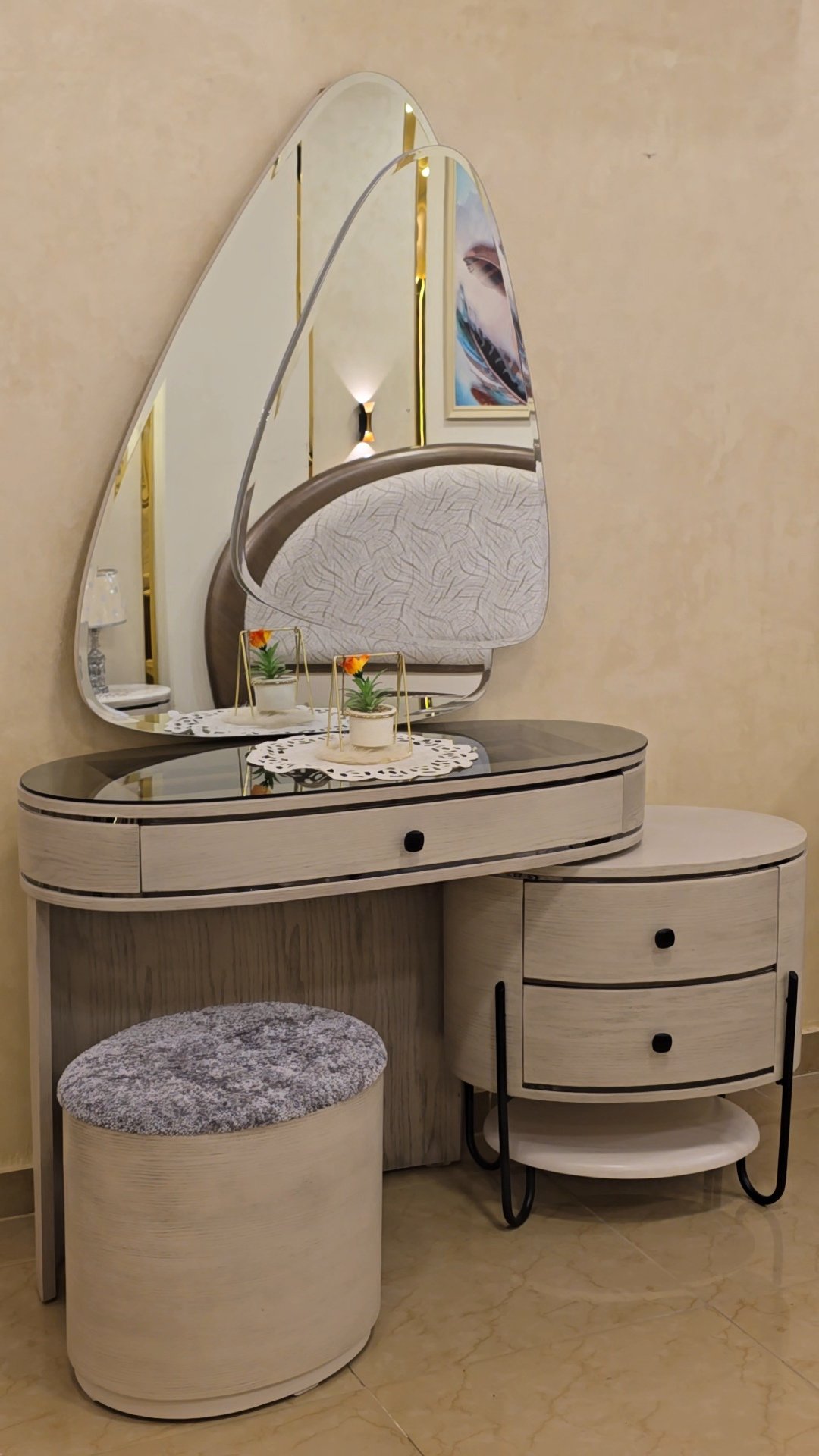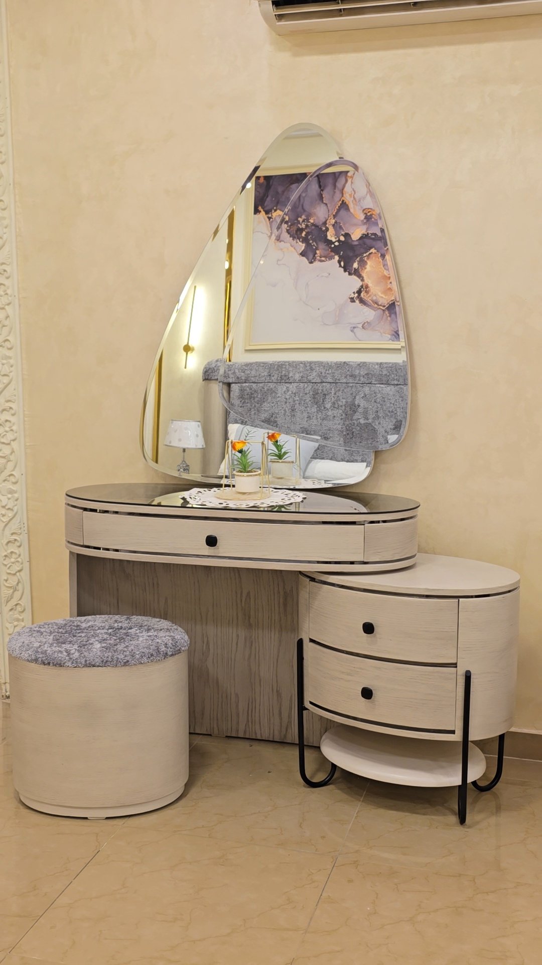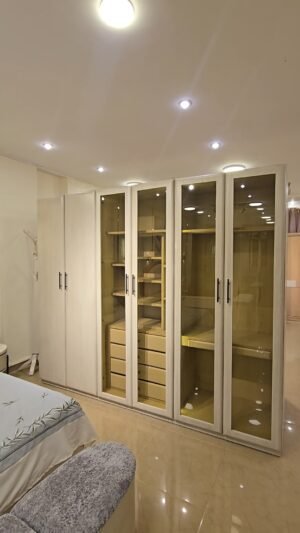 دولاب مميز بستايل فاخربست ضرف اربعه من الازاز مع الامونتال واتنين من الخشب والقشره الطبيعيه بدهان أبيض شروزيه مع الاستالس الدارك افي التسريحه والكمود وبانكت وسرير بستايل تنجيد راقي جدآ وفاخر
