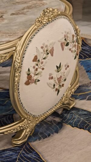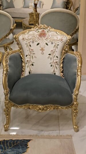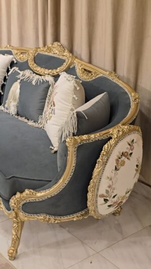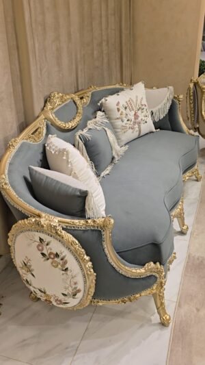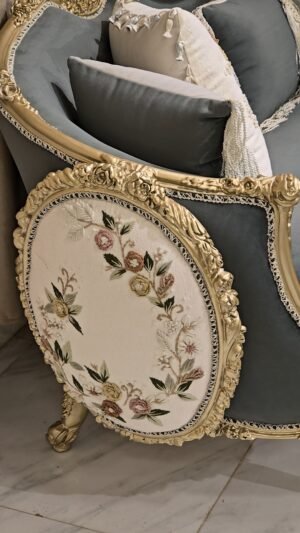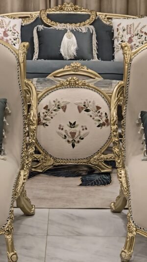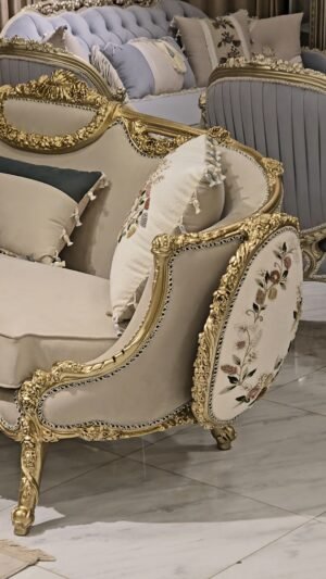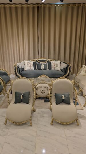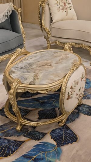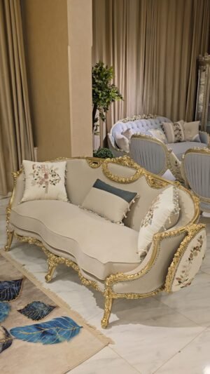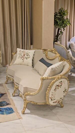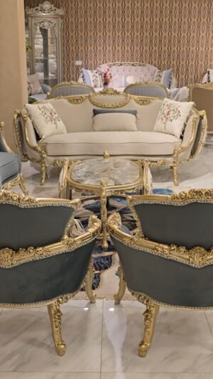 صالون مصنوع بأعلى معايير الجوده من خشب زان أحمر روماني بالكامل مع أقمشه مستورده بألوان مميزه بنتجيد عالي الجوده ومريح مع حفر أيمه مبهر وراقي وممتد في كل تفصيلة وبالإضافة الى رخام مستورد في التربيزه بماتريال عالي